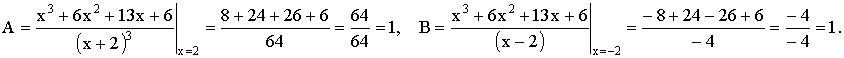 x3 + 6x2 + 13x + 6 = A (x + 2)3 + B (x − 2) + C (x − 2) (x + 2) + D (x − 2) (x + 2)2