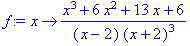 > f:=(x)->(x^3+6*x^2+13*x+6)/((x-2)*(x+2)^3); — выписывается подынтегральная функция