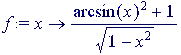 >with(student):f:=(x)->(((arcsin(x))^2+1)/sqrt(1-x^2));#Вводим подинтегральную функцию