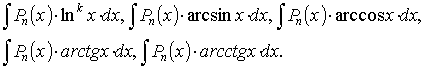 Анализируя разобранные примеры, можно указать следующие типы интегралов, для которых использование преобразования интегрирования по частям приводит к конечному результату