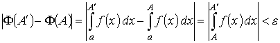сходится, то для произвольного как угодно малого ε > 0 найдётся такое число А0 > a, чтобы при А > A0 и А' > А0 выполнялись неравенства