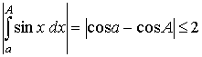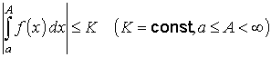 - 1) функция f (x) интегрируема в любом конечном промежутке [а, А] (А > а), и интеграл
