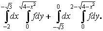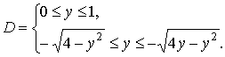 Из рисунка области интегрирования видно, что в направлении оси Оу в интервал – 2 ≤