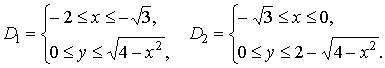 х ≤ 0 попадает точка x = − √3, в которой происходит смена уравнения линии. Поэтому область интегрирования пришлось разбить на две части D1 и D2.