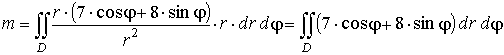 – поверхностная плотность. Найти массу пластины.Р е ш е н и е. Массу пластины найдем, вычислив двойной интеграл,