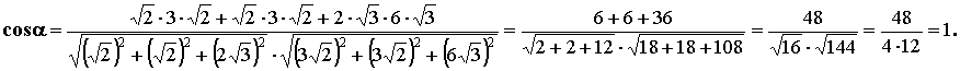 Воспользуемся выражением косинуса угла между векторами в координатной форме
