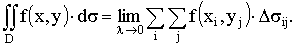 которая является интегральной суммой для непрерывной функции ρ (х, у) в области G. При условии λ = max { diam Δ Sij } → 0, очевидно, получим точное значение массы пластинки, равное двойному интегралу от функции ρ(х, у) по области G, т.е.