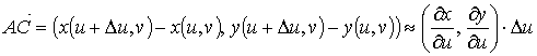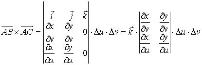 Так как криволинейная ячейка является бесконечно малой, то её можно приближённо считать совпадающей с параллелограммом, построенном на векторах AB и AC. Известны координаты точек