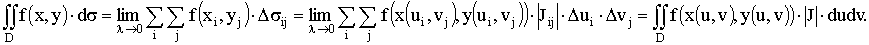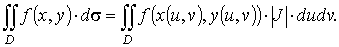 называется определителем матрицы Якоби. Преобразование двойного интеграла к новым переменным производится по формуле
