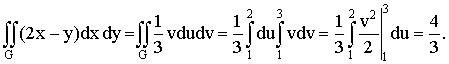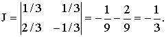 Осталось вычислить определитель матрицы Якоби. Для этого выразим х и у через u и v: x = (u + v)/3, y = (2·u - v)/3. Следовательно,