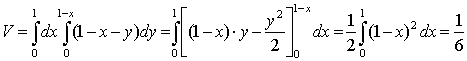 П р и м е р 3. Вычислить объем тела, ограниченный поверхностями х = 0, у = 0, z = 0 и x + y + z = 1.