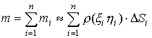 , n) и обозначим через mi массы этих частей. В каждой части возьмем точку (ξ i; η i). Массу mi каждой такой части Gi можно считать приближенно равной ρ(ξ i; η i)·Δ Si, где Δ Si – площадь Gi. Масса m всей пластинки приближенно равна сумме