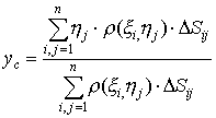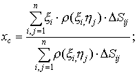 , ,n), выберем в каждой из этих частей некоторую точку (ξ i; η j) и будем приближенно считать массу mi каждой из частей пластинки равной ρ(ξ i; η j), то для координат х с и у с центра масс такой системы материальных точек получим следующие выражения: