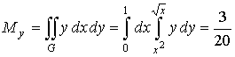 называются статическими моментами инерции пластинки относительно осей Оу и Ох. Таким образом, вычисление координат центра масс пластинки сводится к вычислению трех двойных интегралов.