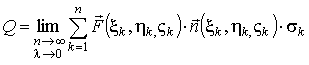 Этот объём можно представить через скалярное произведение вектора F векторного поля и нормали к поверхности в опорной точке