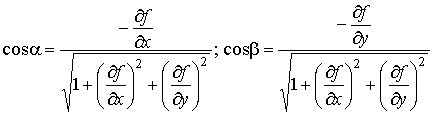 Пусть уравнение поверхности есть z = f (x, y). Направляющие косинусы нормали выражаются соотношениями