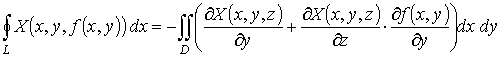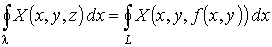 На линии λ имеем z = f (x, y), где х и у — координаты точек линии L, которая является проекцией линии λ на плоскость Оху. Следовательно, имеет место равенство