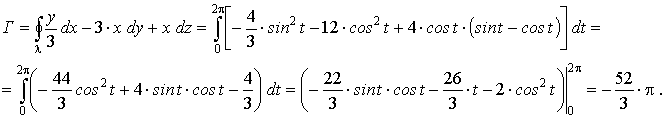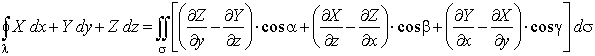 Вычислим теперь циркуляцию по формуле Стокса. Контур Г лежит на плоскости х + у + z = 1. Вектор нормали к этой плоскости имеет координаты