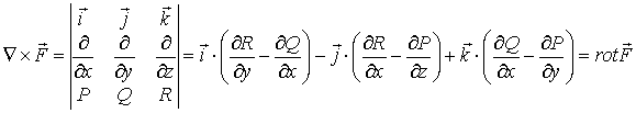 Оператор ∇ обладает свойствами обыкновенного вектора: векторное произведение вектора на самого