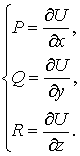 В этом случае проекции вектора F есть частные производные этой скалярной функции U.
