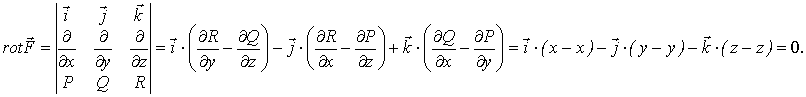 Так как rot F = 0, то поле потенциально. В этом случае существует такая функция U, что для неё выполняются соотношения