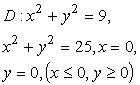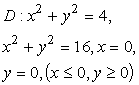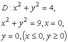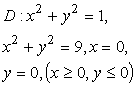 Пластина D задана ограничивающими её кривыми, μ - поверхностная плотность.