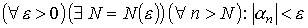 Определение. Последовательность {αn} называется бесконечно малой, если для любого как угодно малого положительного числа ε > 0 существует номер N, зависящий от этого ε, такой, что для любых n > N выполняется неравенство |αn| < ε: