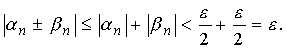 Доказательство. Пусть {αn} и {βn} — бесконечно малые последовательности. Требуется доказать, что последовательность αn ± βn тоже бесконечно малая. Пусть ε – произвольное как угодно малое положительное число, N1 – номер, начиная с которого выполняется неравенство