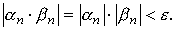 Доказательство. Пусть {αn} и {βn} — бесконечно малые последовательности. Требуется доказать, что последовательность {αn·βn} тоже является бесконечно малой. Так как последовательность {αn} бесконечно малая, то для любого как угодно малого положительного числа ε> 0 существует номер N1, зависящий от ε, такой, что для всех последующих номеров n > N1 ,будет выполнено неравенство