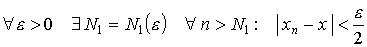 Последовательность, имеющая предел, называется сходящейся. Если последовательность {xn} сходится и имеет своим пределом число a, то символически это записывается так: