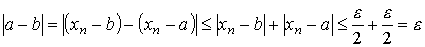 Доказательство. Пусть a и b – есть соответственно пределы последовательностей {xn} и {yn}. Тогда по определению