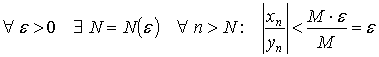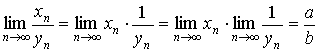 - Если хn → 0 и | yn| > m > 0, то xn / yn → 0.