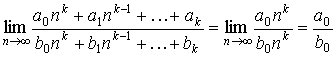 - Если | хn| < M и |yn| → + ∞, то | xn / yn | → 0.