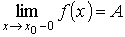 0 < | x - x0 | < δ ) : | f (x) − A | < ε