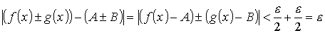 0 < | x - x0| < δ неравенства | f (x) - A| < ε/2 и | g(x) – B | < ε/2 будут выполняться одновременно. И в этом случае модуль разности
