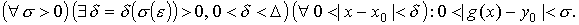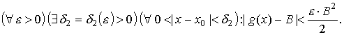 0 < | x - x0 | < δ2 ) : | g (x) − B | < ε