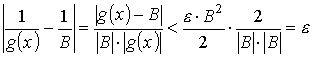 0 < | x - x0 | < δ1 ) : | f (x) – A | < ε,( Если принять δ = min {δ1,δ2} < δ, то для 0 < | x - x0| < δ следует неравенство f (x) > g(x). Но это противоречит условию теоремы, значит, наше предположение А > B неверное.
