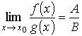 - Предел отношения двух функций.
