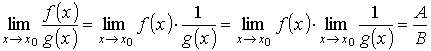 0 < | x - x0| < δ неравенства | f (x) - A | < ε и | g(x) – B | < ε