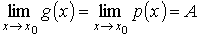 Если в некоторой окрестности точки х0 выполняется неравенство g (x) < f (x) < p (x) и то