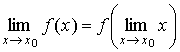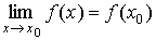 Функция f (x) = x непрерывна также в каждой точке х0 числовой прямой, так как предел функции в точке х0 равен ее значению в этой точке: