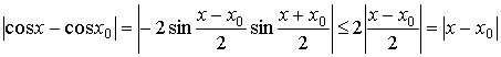 ,Непрерывность функции cos x в любой точке числовой оси доказывается аналогично. Рассмотрим разность