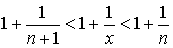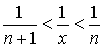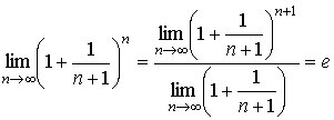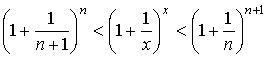 Доказательство. Для любого действительного положительного аргумента можно указать два последовательных натуральных числа, для которых будет выполнено неравенство n < x < n + 1. В том случае имеем n → ∞ ⇒ x → ∞. По свойству для неравенств имеем