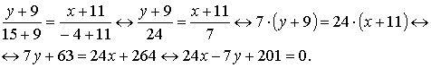 BA = (5 + 11; 3 + 9) = (16; 12), BC = (− 4 + 11; 15 + 9) = (7; 24).