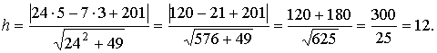 Используя полученное уравнение стороны ВС, формулу расстояния от точки до прямой