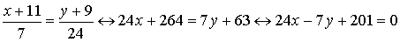 Решением этой системы уравнений будет М0 (1; 4/7; 0). Подставим в каноническое уравнение прямой