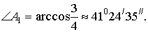 - угол (в градусах, минутах и секундах) между рёбрами А1А2