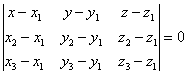 Раскладывая определитель (1.9) по первой строке, и проводя алгебраические преобразования, получим уравнение этой плоскости