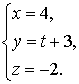 Найдём произвольную точку, через которую проходит прямая, например на координатной плоскости хОу. Составим систему уравнений плоскостей, положив в этих уравнениях z = 0