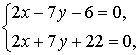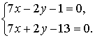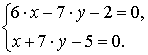 6·х – 7·у – z – 2 = 0; х + 7·у – 4·z – 5 = 0.